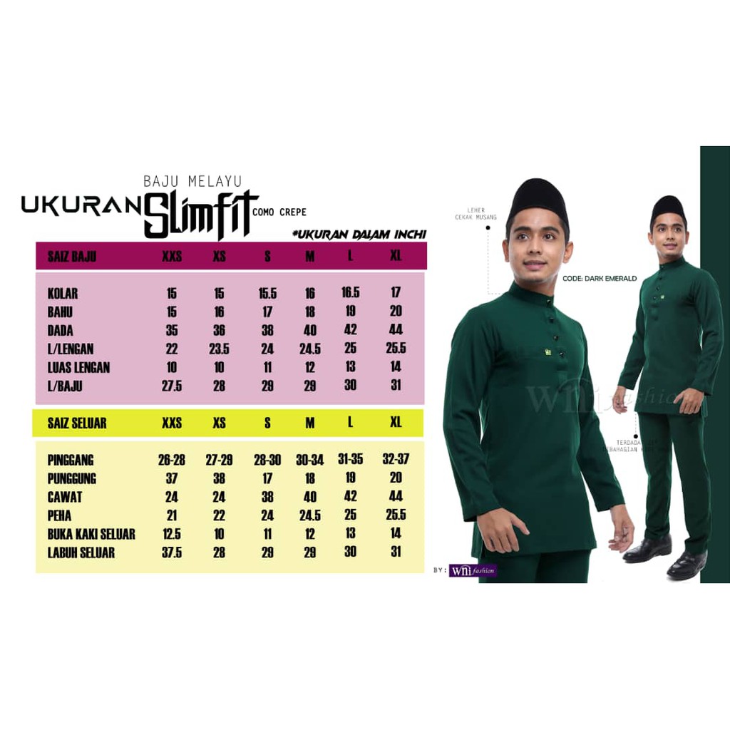 Lihat saiz penuh · 2 orang menyukai ini. Ukuran baju melayu slim fit **material sakura@pearl skin **design moden **5 saiz (dewasa) s m l xl xxl **11 saiz (kanak2) 18 20 22 24 26 28 30 32 34. Recommended for convocation, events and wedding ceremony.